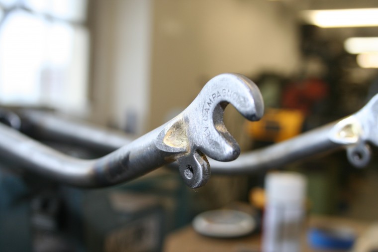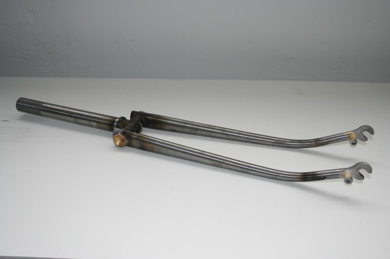 In what ended up combining the skills of just about everyone in the shop, Geekhouse and Royal H teamed up to build this retro-fantastic fork. Note the segmented goodness, and the old school Raleigh ‘side dimples’ (that’s a technical term). Marty built the fork, Brian from Royal H Cycles brazed in the drop outs, and the side dimples (with a little help from Shane), and Brad kept us all in line. More pics here.
