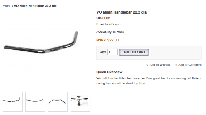 But then I rode a pair and I stopped caring how they were named- If you’re going for a flat bar road bike (so hot for 2011), classing up a commuter, or simply want a handlebar that just feels like Summer; the VO Milan Bar is right up your alley.