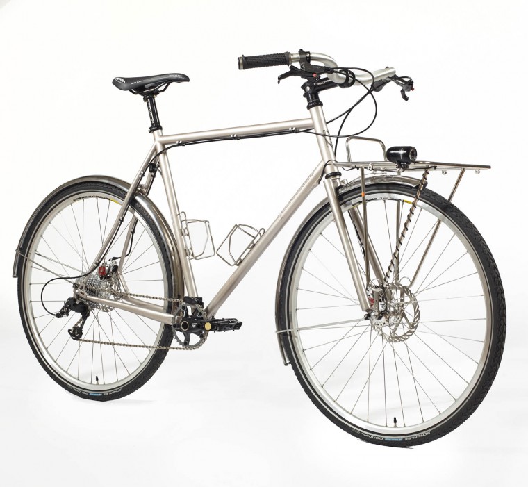 Making a specific Porter model is something that we’ve been working on a for a while now. The ‘Brentwood features a more upright geometry, front Velo Orange Porter rack, as well as generator front and rear lights. Tristan choose the Schmidt Edelux front generator hub, with the Supernova E3 front and rear lights.